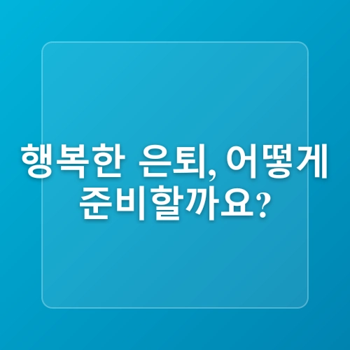 안녕하세요! 50~60대를 향한 멋진 여정, 지금부터 함께 시작해 보시겠어요? 시간이 쏜살같이 지나가는 것을 느끼며, 앞으로의 삶을 어떻게 채워나갈지 고민하는 여러분들을 위해 준비했습니다. 미래를 향한 용기와 함께, 지금부터 시작하는 멋진 준비, 함께 해봐요!